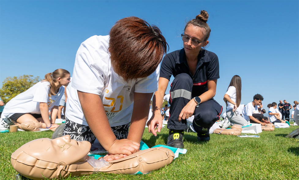 20 minutes chrono pour sauver une vie ! C'est le défi que 500 collégiens ont relevé lors de la formation aux gestes de premiers secours sous l'œil avisé de Rémy Ragnar, pompier professionnel et Didier Deschamps ambassadeur engagé de la sensibilisation au massage cardiaque.
